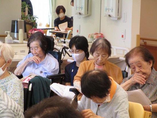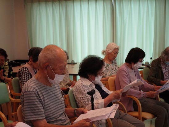 2022年08月16日(火) 歌の会開催 毎月恒例の歌の会を開催しました!! 朝の検温で体調確認もばっちり! 1時間の予定でしたが、全国的な感染拡大をうけて1時間を30分に短縮して実施しました★ 皆様、楽しそうに参加されていました!!