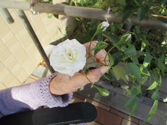 2022年09月10日(土) み~つけた♪ 「かわいい、お花やね♪♪」とデイサービスに来所されているご利用者様が絶賛されているのは、黒田施設長が育てているバラの花! 毎日手塩にかけて育てておられます(*´ω`*)