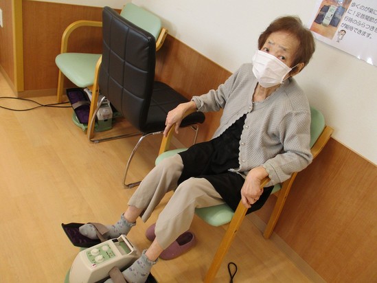 2022年10月31日(月) イージーウォーク~デイサービス~ イージーウォークで足首を動かしておられます(*´▽`*) 足首が硬くなると立ち上がりにくさや、転倒リスクが高くなります!! ご自身では、動かしにくい箇所ですが、機械の力を借りながら動かしていきます(*´▽`*)