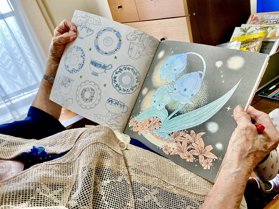 2022年10月12日(水) ~お部屋での過ごし方~ こんにちは!訪問看護です(^^)/ ある利用者様のお部屋に入ると、一生懸命なにかをされていました… 「集中していたらこんな時間になっていたわ~」 色塗りを丁寧にされていたS様… 手先が器用で、編み物も熱心にされる方です☆ なんと昨日は集中しすぎて、夜中までされていたようです!! 無理しない程度にして、完成したらまた見せてくださいねとお話しました(^^♪