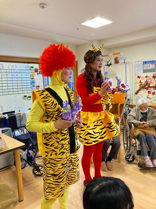 景品を配るスタンバイをする赤鬼さんと黄鬼さん( *´艸`)