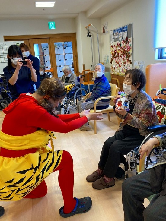 的当てゲームの結果発表と景品の贈呈を鬼さんから(*'▽')