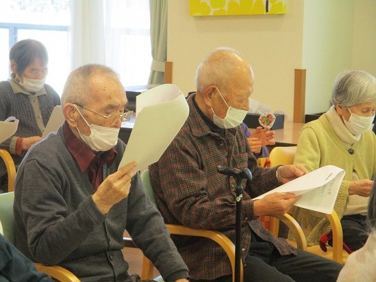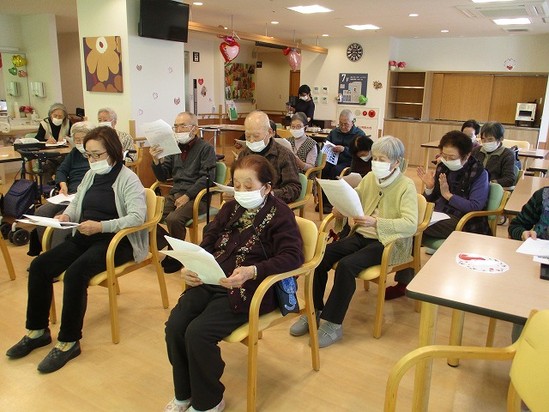 2023年02月28日(火) 2月歌の会② 声を出すことは脳の活性化につながり、歌うことは嚥下状態の向上につながります! それより、なにより・・・・ 歌うことでストレスも発散させて楽しく過ごせるように!!