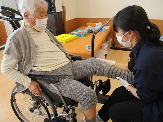2023年03月23日(木) 徒手的訓練(*´▽`*) 関節の拘縮予防に可動域訓練を行っています! 浮腫んだ足も関節を動かすことで血流が良くなり軽減する事が知られています! 機能訓練士がご本人様と相談しつつ、快適に日常生活を送ることが出来るようにリハビリを行っています(*´▽`*)