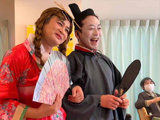 おだいりさまとおひなさまがみなさまにご挨拶に行き