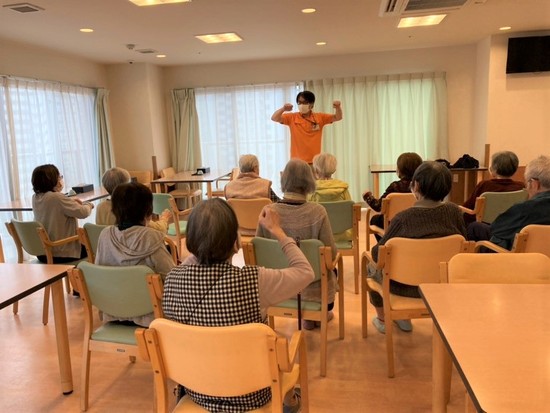 みなさん真剣に体操しつつ、北条サ責の冗談に笑い