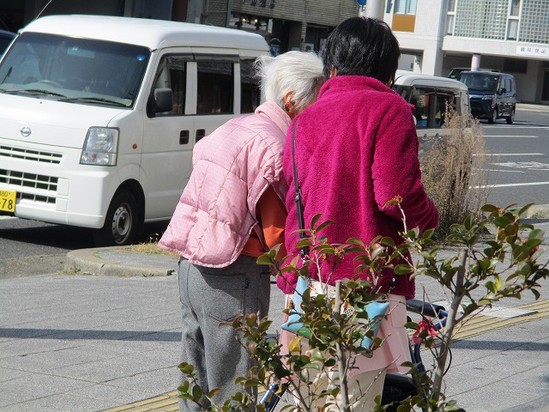 2023年03月26日(日) お散歩♪♪ 窓からなにやら楽しそうな姿が・・・・・ 「こんにちは~(*´▽`*)」 訪問リハビリの先生と屋外歩行訓練中のY様でした☆ 暖かくなって、外の空気が気持ちよい季節になりましたね!!!