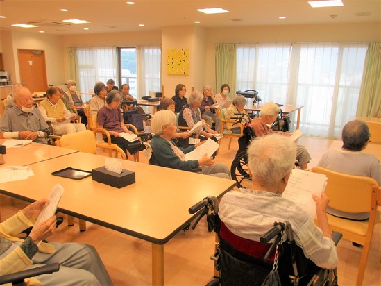 2023年07月29日(土) 歌の会~季節の歌を♪♪~ 今日は毎月恒例の歌の会の様子をお届け 『海』や『憧れのハワイ航路』等、夏らしい歌を中心に歌いました 水分補給も行いながらの開催となりました。 皆様、お疲れさまでした