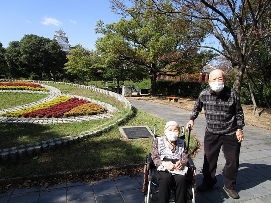 2023年11月07日(火) 紅葉ドライブツアー(*'ω'*)~デイサービス~ 姫路の美術館付近に紅葉を見に行ってきました☆ もう11月なのに・・・なんと25度!!!! うっすら色づいた紅葉を見て 「11月やのにね~温暖化かね~」 と・・・・ 来週からは寒いらしいので、お互い、お体に気を付けましょうね♪