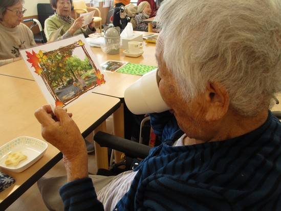 2023年11月24日(金) 紅葉ツアー~こぼれ話~・・デイサービス・・・ 紅葉ツアーで撮らせていただいた写真を、皆様に現像して配らせていただきました(^^♪ 「きれいに撮れとるな~!!」 「お城が写ってる」と嬉しそうな表情!! また行きましょうね☆☆