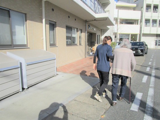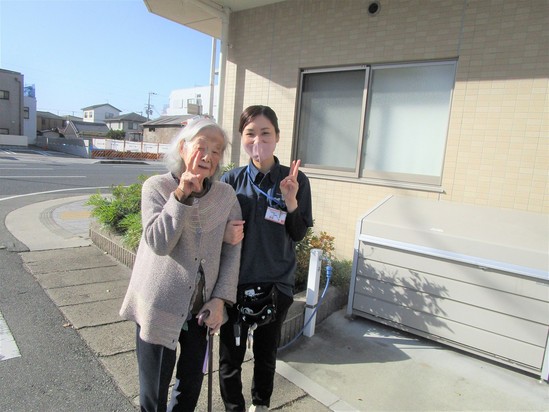 2024年01月31日(水) 看護師さんと屋外歩行訓練 「こんにちは☆」 アルファリビングの周りを看護師さんと歩行訓練されているK様に遭遇しました♪ 「一人だと歩くのも心配だからうれしいわ(#^.^#)」 と笑顔! 「はずかしい(*ノωノ)」と言われつつも、ハイ、チーズ☆
