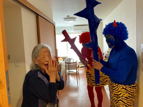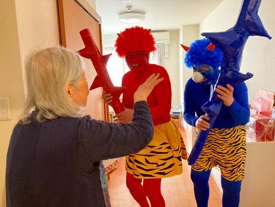 みなさん笑顔で出迎えてくれるので鬼たちも嬉しそうです