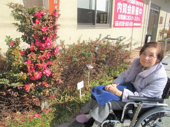 2024年02月21日(水) サザンカの花~デイサービス~ デイサービスに来られた城北のA様♪ 「素敵な花ね(^^♪」とおっしゃり、しばらく日向ぼっこ☆ 今年は、お花も大きく、たくさんつきました! 「お花はええね♪」と(⋈◍>◡<◍)。✧♡ また、暖かくなったらお花見に出かけましょうね!!