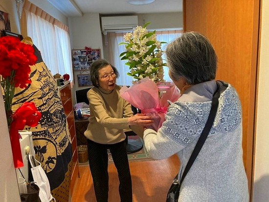朝一 姪御様たちよりお花のお届け物が届き