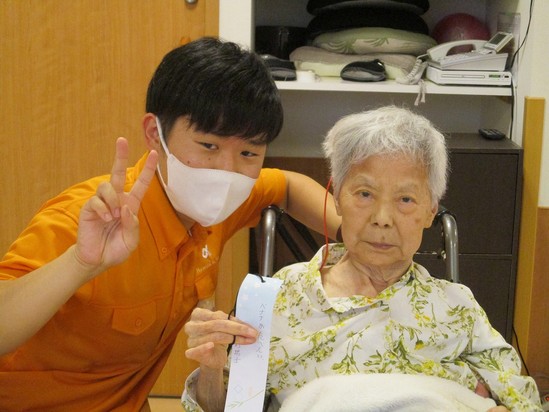 2024年07月01日(月) 星に願いを~デイサービス~ 毎年恒例、七夕の飾りつけを行いました☆ 「小さい時は8月やったよ?」 と旧暦で祝う方がたくさん!!!! 美味しいものがたくさん食べられますように(⋈◍>◡<◍)。✧♡