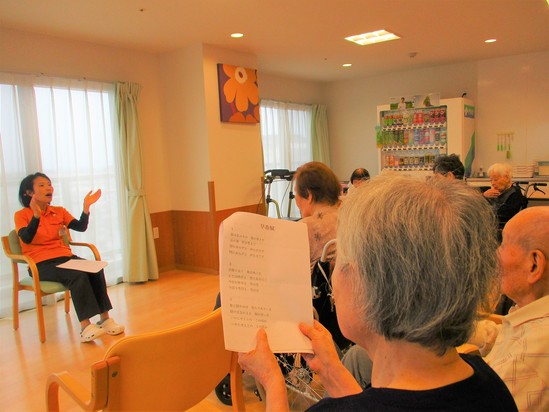2024年07月02日(火) 初夏の歌の会 段々暑い日が増え、動くのもおっくうに・・・・・ そんな季節ですが、歌の会には30人を超える参加者が!!! ありがたいことです(#^.^#) 職員も負けずに声を出しながら45分の楽しい時間を過ごされました(⋈◍>◡<◍)。✧♡
