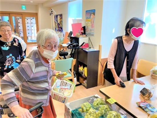 2024年09月15日(日) 月に2回のお楽しみ 今日は「うめき商店」さんが来る日~ ♪ 皆さん楽しみにしておられる日ですね (⋈◍>◡<◍) 「あれも欲しい」「これも欲しい」「あっ、これも買おうかな」 会話も弾んでおられます