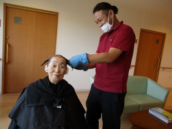 2024年10月05日(土) 訪問理美容(*'▽') 某階エントランスにてウトウト気持ちよさそうなN様を発見!! 「髪を染めてもらっってるのよ★」 と笑顔♪ 「美容院に行くのが難しくなったから、すごく助かってます★」と!! カラーや、カットだけでなく、パーマも対応したくださいますよ!!