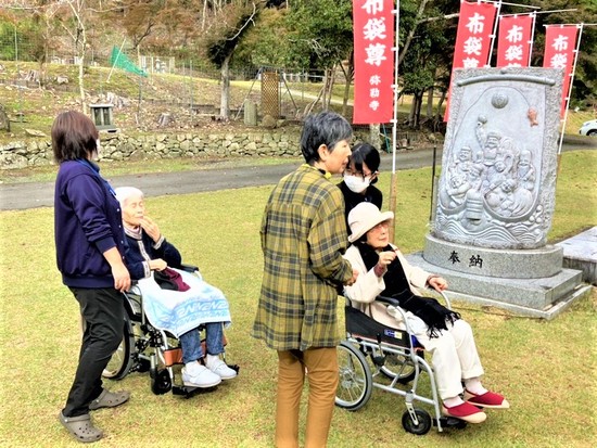 布袋さん の 首に賽銭箱があり、そこめがけて賽銭投入~~