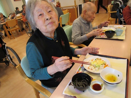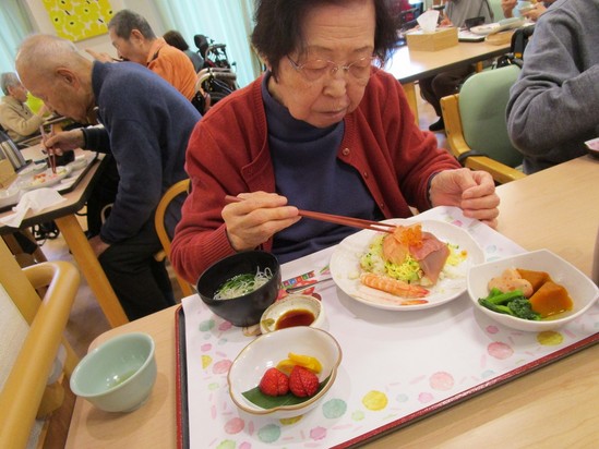 2025年03月10日(月) ひな祭りランチ ひなまつりは海鮮ちらしずしでした(^_-)-☆ 海老もサーモンも・・・・いくらまで!? 美味しくいただきました♪ 「おいしいよ~!!」と黙々と・・・・・ 完食の方も多く、楽しいひな祭りとなりました♪