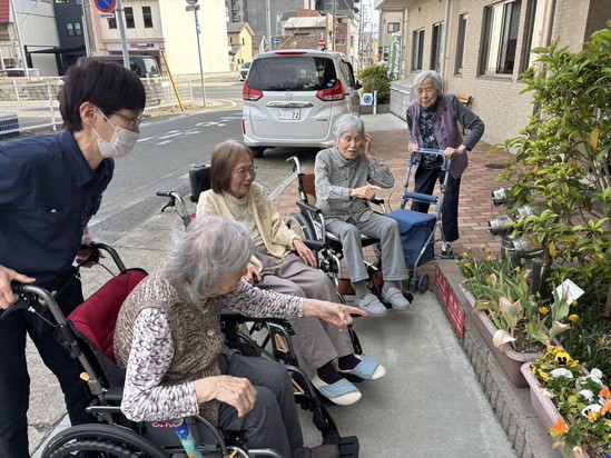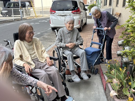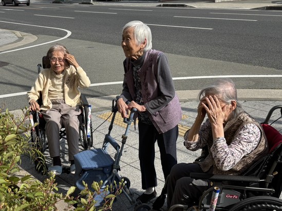 暖かな日差しの中、入居者様と散歩 (^^♪