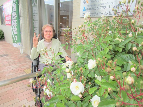2025年05月19日(月) バラが咲いた~デイサービス~ 素敵なバラが満開に咲き誇っています(^_-)-☆ 「ええ気持ちやな~」 と青空を見上げられるT様(*'▽') 「花があると嬉しくなるね!」 と少しの時間ではありますが、お花見を楽しまれていました♪