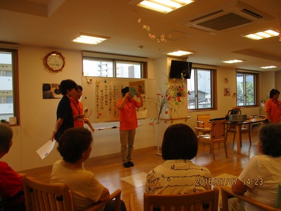 七夕の唄を唄い、紙芝居をしました。みなさん、覚えていたかな??