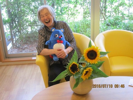 2016年07月13日(水) ひまわり スタッフの庭に咲いていた ひまわり 御入居者様が生け花の先生をしていたと小耳に挟み 早速スタッフがお願いし、ひまわりを生けてもらいました。 とびっきりの笑顔と共に生け花完成 さすが素敵です。