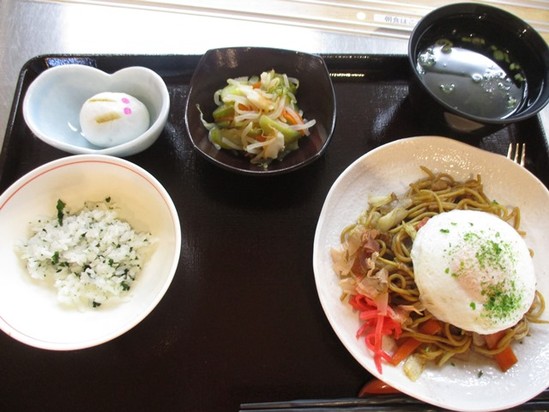 2017年10月05日(木) 中秋の名月 今年の中秋の名月は10月4日です 厨房さんが昼食にお月見焼きそばを作ってくださいました。 焼きそばの目玉焼きがまんまるく模られてます 食事風景です(*^_^*)
