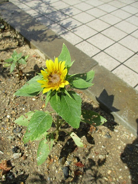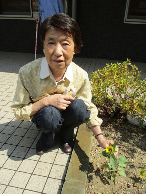 2018年08月08日(水) ひまわり 小さなひまわりが咲きました。 このひまわりは入居者様が種をまき、お水をあげて我が子のように育てやっと咲きました。 今年は地震、大雨、猛暑、台風と異常気象の中咲いた一輪です。