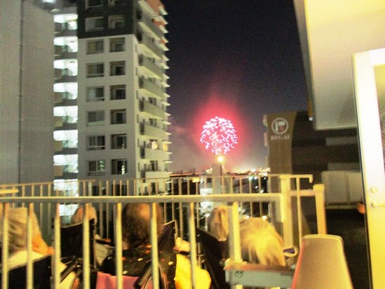 2018年08月23日(木) 猪名川花火大会 第70回猪名川花火大会が開催されました。 いつもは屋上の西側から鑑賞していましたが今年は東側からも鑑賞できるようにしました。 西側屋上では... 東側屋上では... 皆さん約1時間、夜空に描かれる花火を鑑賞されました