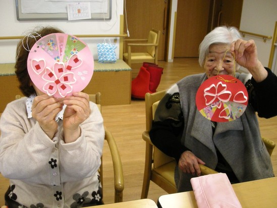 今回の製作レクは、トイレの芯を利用して桜の季節飾りを作りました