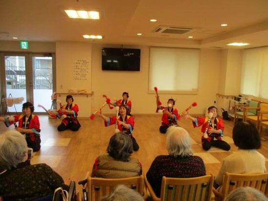 昨年も来所して下さった「川西銭太鼓幸の会」の方が来て下さり歌って踊って