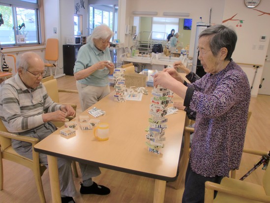 2020年05月23日(土) 牛乳パックタワー 今日も元気にみなさんと身体を動かした後は、牛乳パックを使ったタワーを作りました。 バランスよく積み上げていき、23個積み上げた方がいました(^o^) 次回は何個積めるか楽しみです。