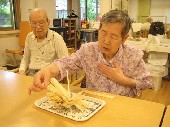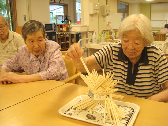 2020年06月13日(土) 割りばしタワー 今日は割りばしを使ったタワーを一本ずつ倒れないように取っていくゲームをしました‼ 皆さん慎重に慎重に一本ずつ抜いていきます 「あぁ~倒れる~」など言われながら盛り上がっていました(^o^)