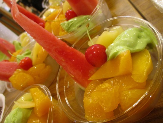 スタッフで白玉を作りフルーツ、アイスを盛り付けました