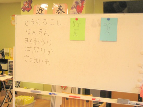 例えば「野菜」「黄色」の場合、黄色い野菜を探していきます。