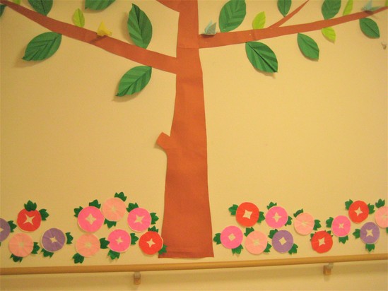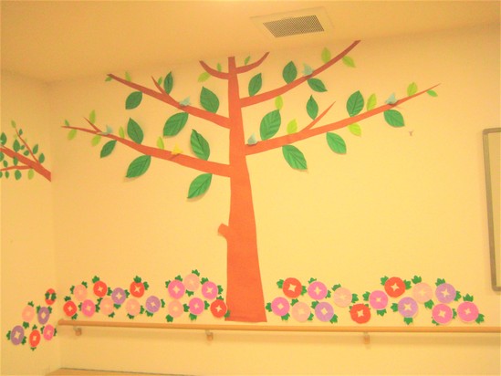 2021年07月03日(土) 朝顔が咲きました デイサービスの壁に朝顔が咲きました。 朝顔のお花と木の間がさみしい、、、??? と思われていますよね⁉ 大丈夫です。そのスペースにはご利用者様方の塗り絵の作品を随時貼って行きます‼ 完成、乞うご期待‼