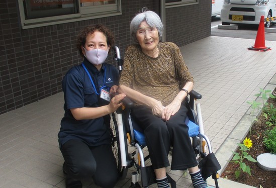 久しぶりのスタッフ同行のお散歩から帰ってきた入居者S様