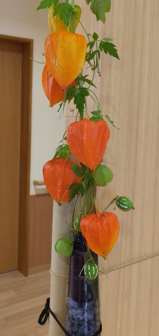 一緒に飾られているのは『風船カズラ』と『スズメウリ』です