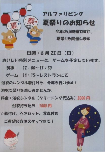 ワクチン接種も終わったので8月に少しイベントをしたいと思い夏祭りを企画しました。