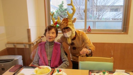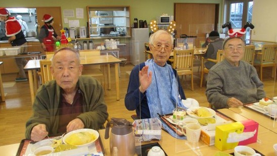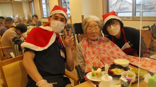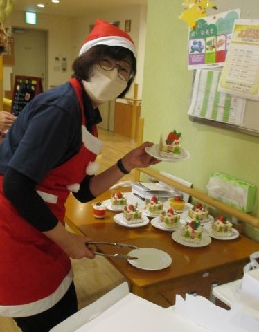 2021年12月31日(金) メリークリスマス こんにちは、先日25日クリスマス当日の昼食にケーキが振舞われました。 皆さんサンタ帽などを被られ楽しそうにされておられました。 「ケーキも美味しかった」とお言葉をいただきました。