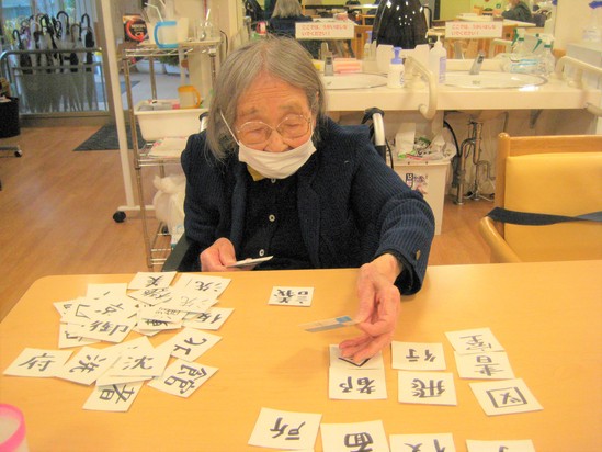 2022年01月22日(土) 漢字カード たくさんある漢字カードを組み合わせて単語を作っていきます。 出来るだけ多くの単語を作っていくのですが、、、 凄いですね!余らず全部のカードを使い完成されました!!