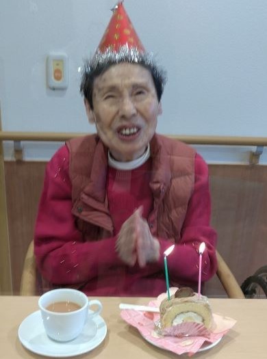 2022年01月28日(金) お誕生日おめでとう こんにちは、先日H様のお誕生日でした。 妹様とプチ誕生日会で嬉しそうにされていました。 「ふうーっ」とろうそくを消されケーキを召し上がられていました。 まだまだ寒い日が続きますのでこれからもお元気でお過ごしください