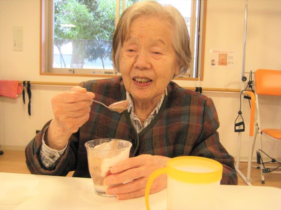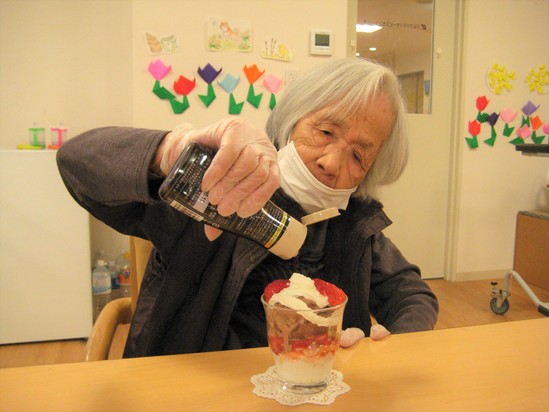 仕上げに利用者さんにチョコソースをかけて頂きました。