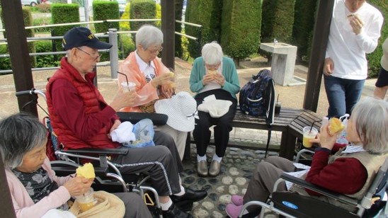 2022年05月23日(月) 久しぶりの車での外出② 前回の次の日にあいあいパークに車でお出かけしました。 皆さん暑い中でしたが「楽しかったわ」と仰られていました。 コロナも少し落ち着いてきたので少しづつですが外出など喜んで頂けるイベントを増やしていけたらと思います。