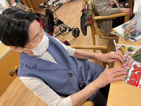七夕に向けての制作で前回は短冊に願い事を書いていただいている様子をお伝えしましたが、今回は短冊を飾る物を制作中。