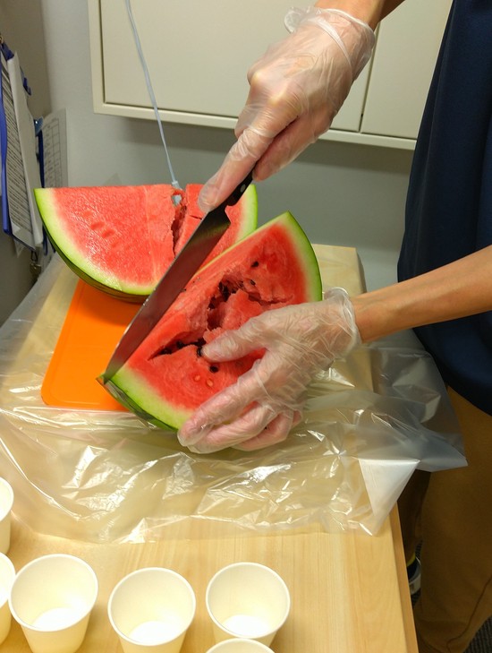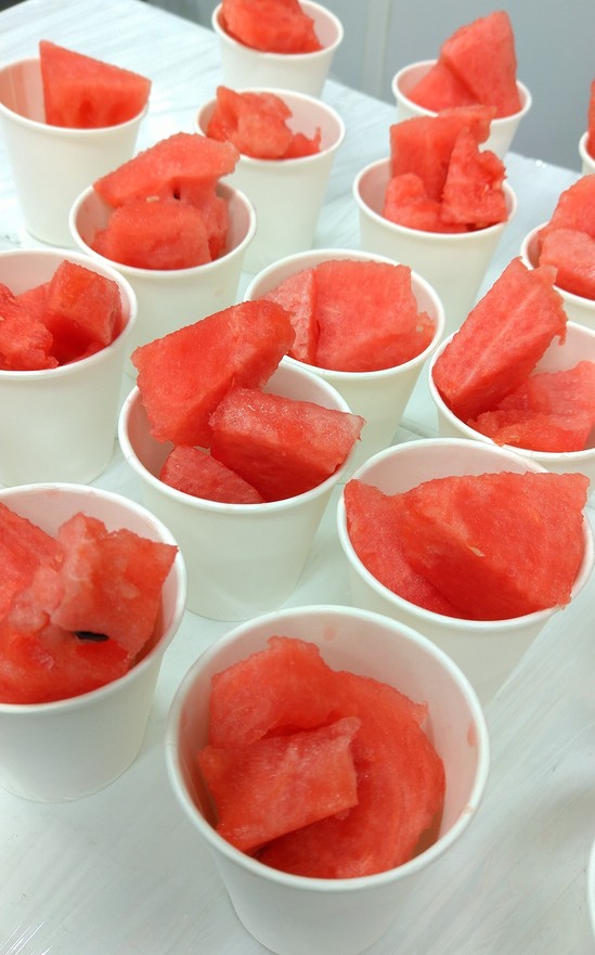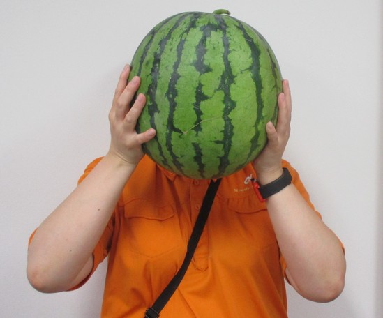 スタッフの顔がすっぽり隠れてしまうほどの大きなスイカの差し入れがありました
