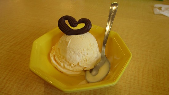 バニラアイスの上にはハートのチョコレートをトッピングして可愛いいですね