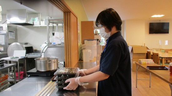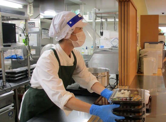 ご提供に向けて厨房のスタッフの方も感染対策を実施して下さっています。